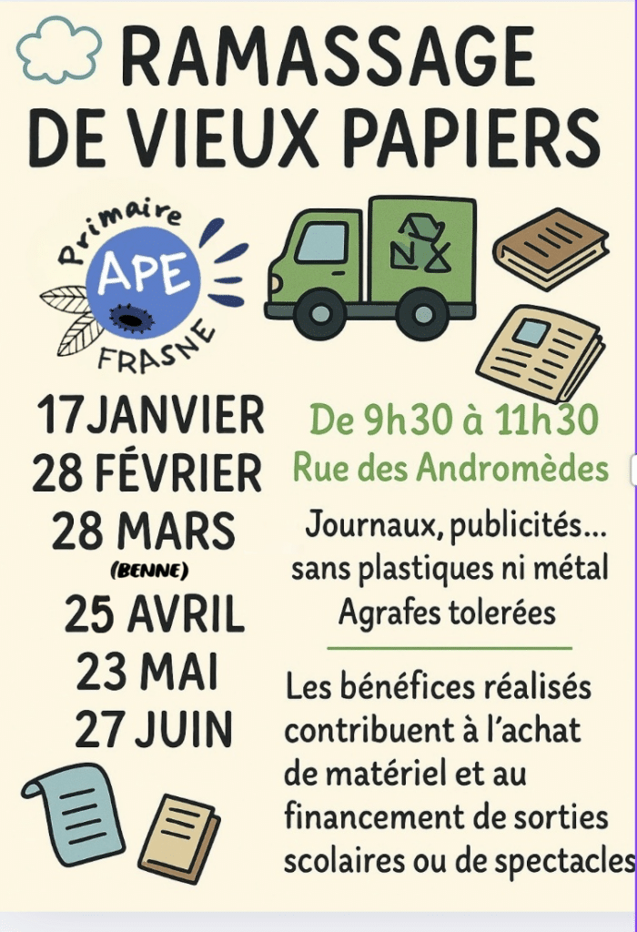 Pour rappel, ceci est une action pour financer les projets de l’école primaire de Frasne.