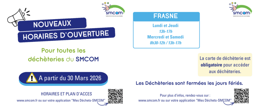 À partir du 30 mars 2026, toutes les déchèteries du SMCOM changent leurs horaires d’ouvertures.